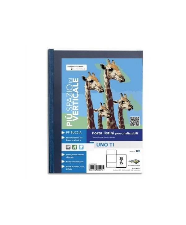 Marca: SEIPortalistini in polipropilene formato leggermente superiore all’A4 (25 × 35 cm), dotato di 24 buste perfettamente allineate e copertina personalizzabile blu, perfetto per conservare e organizzare stampe, disegni o progetti.