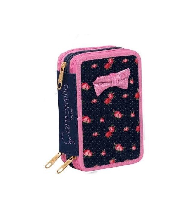 L’astuccio Seven by Camomilla 3 zip è perfetto per le ragazze che cercano stile e funzionalità in un unico prodotto. Il tessuto in poliestere stampato con glitter sul fronte dona un tocco fashion, mentre i tre scomparti con zip in metallo permettono di organizzare fino a 45 accessori (pastelli, pennarelli, penne cancellabili, temperino doppio foro, forbici, colla, righello). L’interno è dotato di elastici portacolori che mantengono tutto in ordine durante il trasporto. Il formato compatto 12,5 × 19,7 × 7 cm si abbina perfettamente a zaini e trolley Seven, trasformando la routine scolastica in un’esperienza stilosa e organizzata.