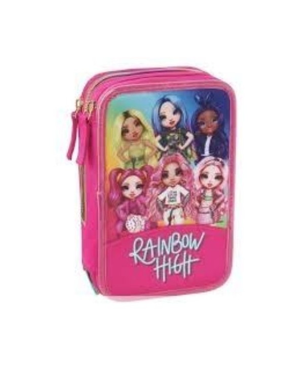 Marca: Franco Cosimo PaniniAstuccio scuola completo firmato Rainbow High, con triplo scomparto, ricco corredo di cancelleria: matite colorate, pennarelli, righello, squadra e altro. Ideale per organizzare tutto il necessario per la scuola in modo divertente ed elegante.