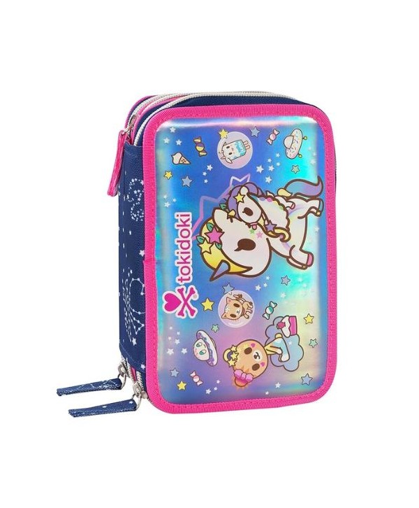 Marca: Franco Cosimo PaniniAstuccio Tokidoki con tre scomparti zip e grafica Panini, fornito completo di matite colorate, pennarelli, penne, temperino e altri accessori. Ideale per chi desidera un kit scolastico già pronto.