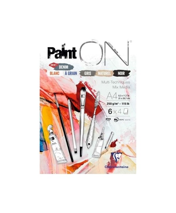 Marca: CLAIREFONTAINEBlocco multitecnica Paint ON formato A4 con 24 fogli assortiti spessi 250 g/m². Ideale per schizzi, pittura acrilica, acquerello e collage