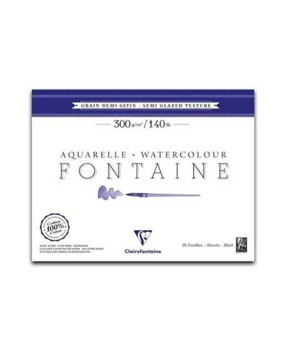 Marca: CLAIREFONTAINEBloc Fontaine satin 300 g/m², formato 24×30 cm, 25 fogli incollati su quattro lati. Carta satinata fine, 100 % cotone: ideale per tecniche umide con finitura vellutata.