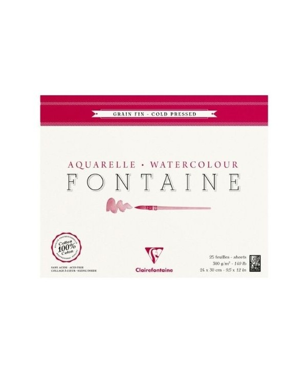 Marca: CLAIREFONTAINEBlocco carta Fontaine Extra White 300 g/m², formato 24×30 cm, 25 fogli incollati su quattro lati (C4). Ideale per acquerello e tecniche umide, con bianco luminoso e superficie grain fin, qualità professionale.