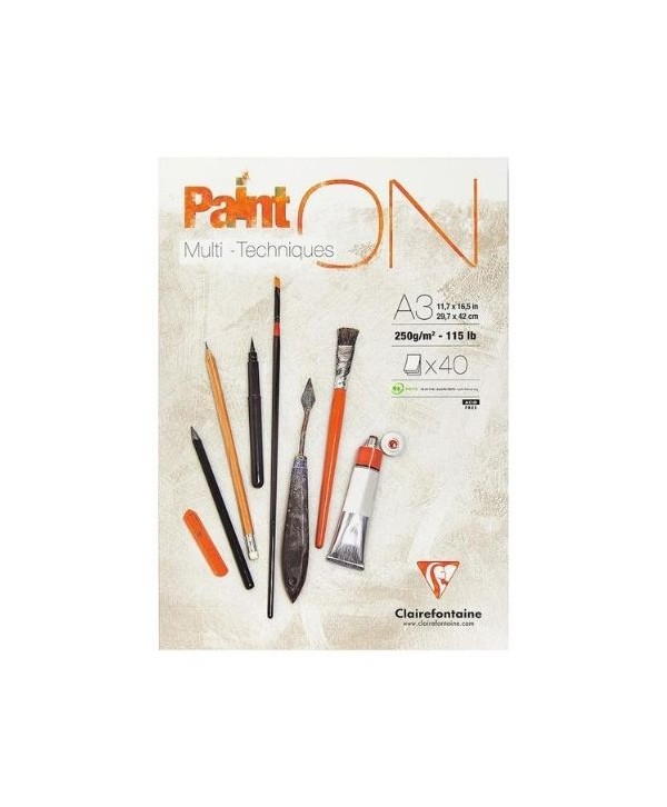 Marca: CLAIREFONTAINEBloc Paint’On A3 con 40 fogli da 250 g/m², carta bianca multitecnica. Ideale per acquerello, acrilico, gouache, penna, pastello o collage: versatile e ad alta resa.