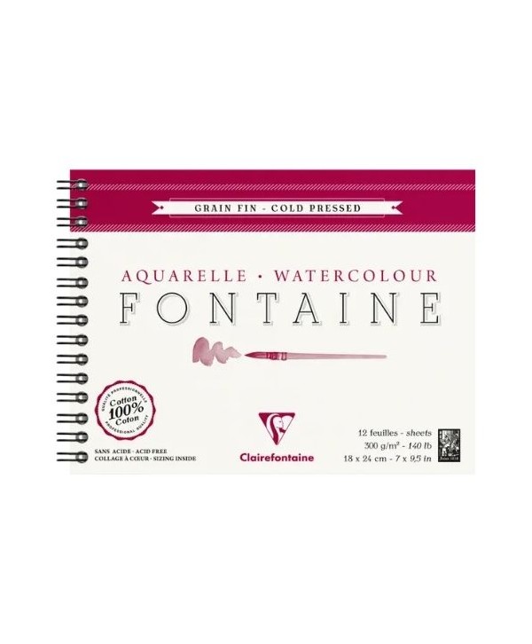 Marca: CLAIREFONTAINEAlbum aquarello professionale Fontaine, carta 100 % cotone da 300 g/m² a grana fine, formato 18×24 cm con 12 fogli. Ideale per tecniche ad acquerello, offrendo eccellente assorbenza e resistenza.