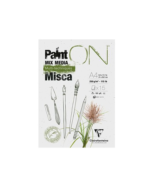 Marca: CLAIREFONTAINEBlocco multitecnica Paint’On Mix Media Misca in formato A4, con 15 fogli da 250 g/m², carta bianca con fibre vegetali, ideale per tecniche secche e umide.
