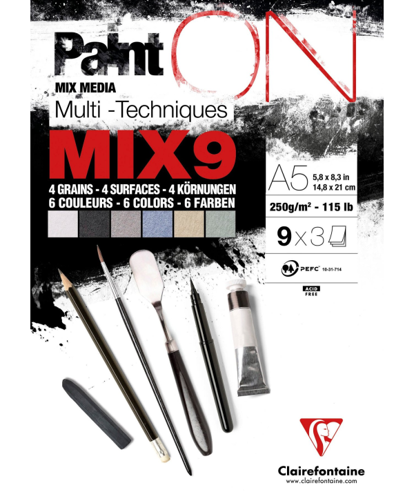 Marca: CLAIREFONTAINEBlocchetto Paint'ON formato A5, con 27 fogli di carta multi-tecnica da 250 g/m² in colori assortiti. Ideale per sperimentare con tecniche secche e umide su supporti diversi.