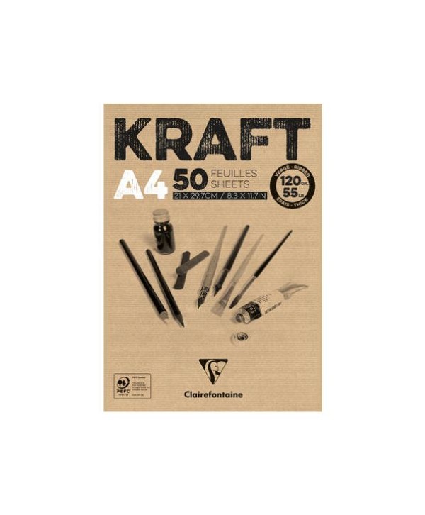 Marca: CLAIREFONTAINEBlocco A4 da 50 fogli in carta Kraft avana vergata da 120 g/m², ideale per disegno con pastelli, gessetti, carboncino e tecniche miste.