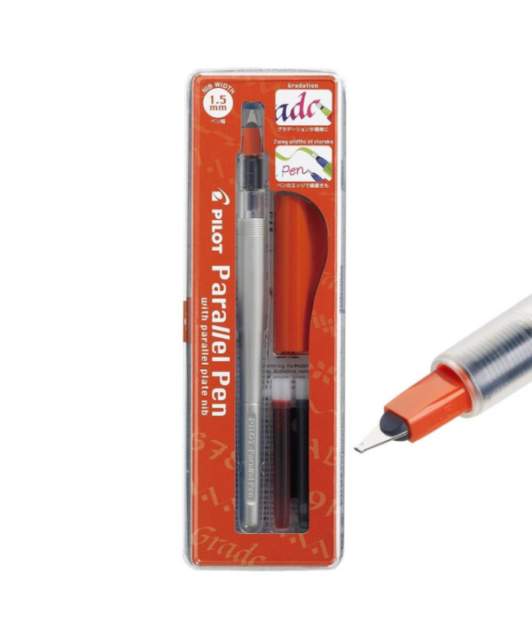 Marca: PilotPenna stilografica Pilot Parallel Pen 1,5 mm, con due cartucce (nero e rosso) e accessori per pulizia. Permette tratti larghi e sottili e mix di colori.