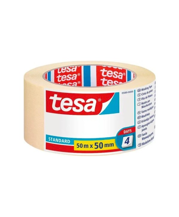 Marca: TESANastro per mascheratura Tesa Eco, carta beige 50 mm × 50 m, adatto a diverse superfici, con adesivo privo di solventi, eco-friendly e facilmente removibile senza residui.