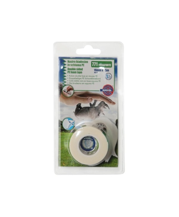 Marca: EUROCELLRotolo di nastro biadesivo spessorato largo 19 mm e lungo 1,5 m, ideale per fissaggi robusti e stabili: perfetto per montaggi su superfici ruvide o dove serve uno spessore adesivo.