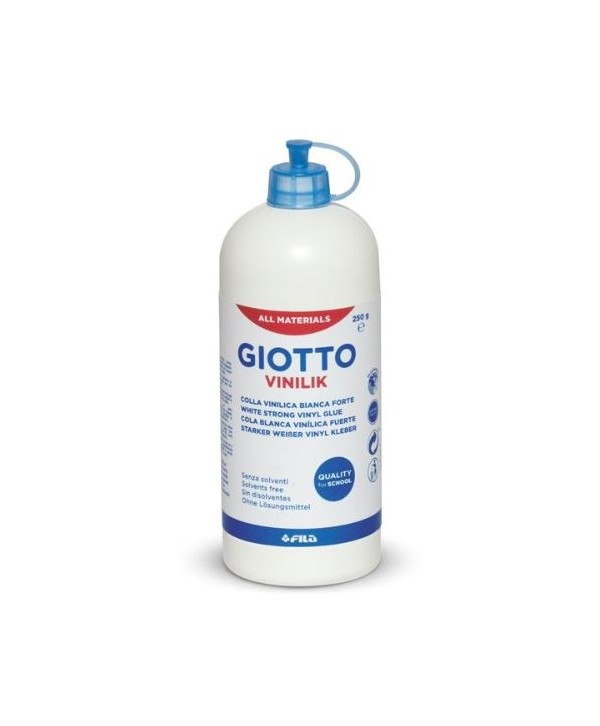 Marca: GIOTTOColla vinilica bianca da 250 g, formula versatile adatta per carta, cartone, legno, ceramica e materiali leggeri. Asciuga rapidamente e diventa trasparente: ideale per progetti scolastici o lavori manuali.