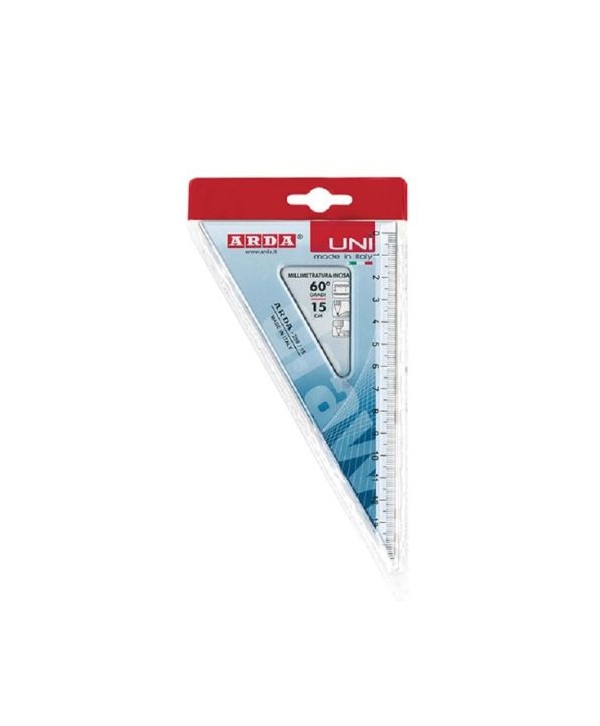 Marca: ArdaPiccola squadra ad angolo 60° da 15 cm in plastica fumè ottico. Precisa per piccole misurazioni o dettagli geometrici.
