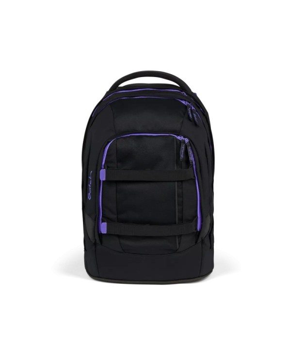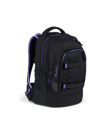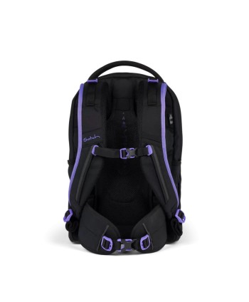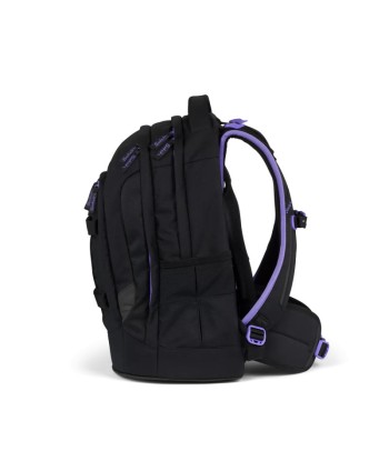 Lo zaino Satch Pack Purple Phantom è progettato per adolescenti, con schienale ergonomico 3-layer e sistema Your‑Size per adattarsi da 140 a 180 cm, distribuendo meglio il peso grazie a spallacci imbottiti, cintura pettorale e lombare, e stecca dorsale in alluminio. Realizzato in poliestere riciclato (circa 20 bottiglie PET), è idrorepellente senza PFC e include doppio scomparto principale, tasca organizer con vano imbottito per laptop o tablet, e due tasche esterne XL per borraccia. La struttura solida si mantiene stabile su ogni superficie tramite il fondo rigido integrato. Completano la funzionalità inserti rifrangenti, uscita per cuffie, SWAP frontali personalizzabili, e clips per la palestra.