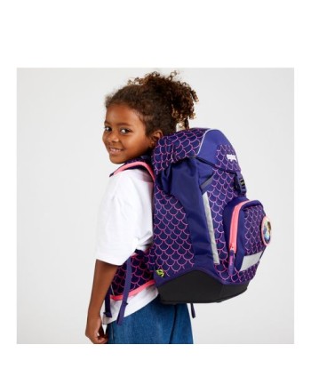 Il modello Ergobag Prime Pearl DiveBear offre una combinazione di design accattivante, comfort ergonomico e sostenibilità: la struttura è realizzata in poliestere riciclato, con sistema di supporto Your‑Size‑System regolabile che si adatta alla crescita del bambino. È dotato di spallacci imbottiti, cintura lombare e cinture pettorali che favoriscono una postura corretta. Riflettori integrati garantiscono sicurezza in ambienti urbani. Facile da aprire con chiusura magnetica e personalizzabile con Kletties e Hangies.