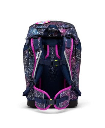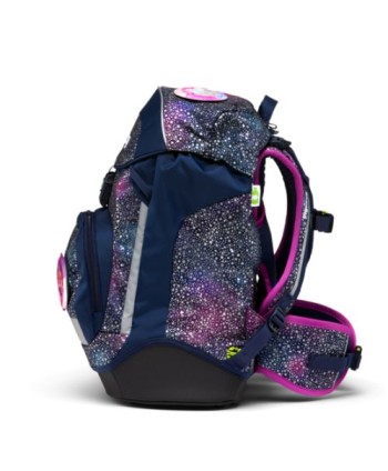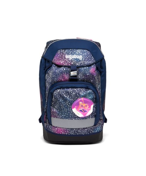 Il modello Ergobag Prime Bearlaxy unisce funzionalità ergonomica e stile spaziale: realizzato in poliestere riciclato, con Your‑Size‑System regolabile da 100 a 150 cm e cintura lombare imbottita per una postura ideale. Il design riflettente su tutta la superficie assicura visibilità in condizioni di scarsa luce. Apertura tramite chiusura magnetica, tasca frontale con vano porta borraccia a prova di perdita e sistema di compressione con coulisse interna che avvicina il peso alla schiena. Personalizzabile con Kletties/Hangies.