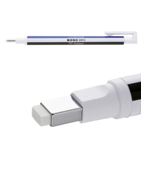 Marca: TOMBOWGomma di precisione Tombow Mono Zero rettangolare da 2,5×5 mm con elegante custodia bicolore, ideale per cancellazioni tecniche e dettagliate.
