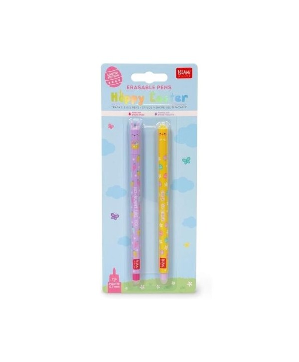 Marca: LegamiSet di 2 penne gel cancellabili a tema Pasqua (“Hoppy Easter”), perfette per aggiungere un tocco festivo ai tuoi appunti o come idea regalo. Include una penna con inchiostro rosa e una con inchiostro viola, entrambe con design allegro e decorativo.