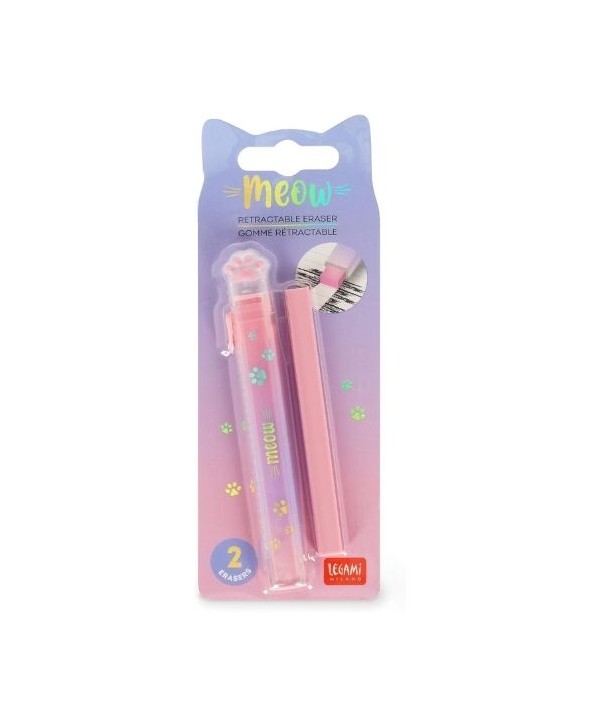 Marca: LegamiGomma retrattile Legami “Meow” con struttura estensibile e ricarica inclusa, design gatto con grip a forma di zampa, perfetta per studenti o chi ama accessori kawaii, uso pratico in classe o in casa.