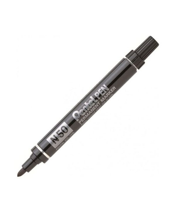 Marca: PENTEL ITALIA S.P.A.Pennarello indelebile Pentel N50 nero con punta tonda da 4,3 mm e tratto 1,5–2 mm, perfetto per scritture durature.