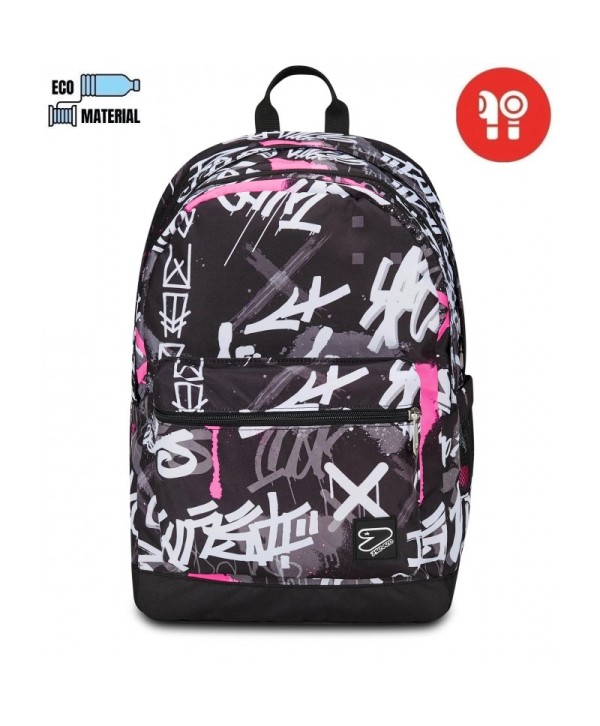 Lo zaino Seven Pro XXL Detach da 35 litri è un tre zaini in uno: doppio scomparto con cover fantasia, mono scomparto o doppio scomparto tinta unita grazie al pannello frontale staccabile e reversibile. Realizzato in poliestere 100 % riciclato certificato GRS da circa 33,5 bottiglie PET, include cuffie wireless con luci LED e custodia di ricarica, schienale EVA preformata e spallacci imbottiti traspiranti. Presenta scomparto imbottito per computer portatile o tablet, tasca laterale porta borraccia in rete, zip antifurto, maniglia in nastro e inserti rifrangenti per sicurezza. La zip principale ha puller antifurto per una maggiore protezione.