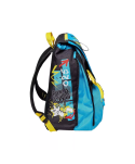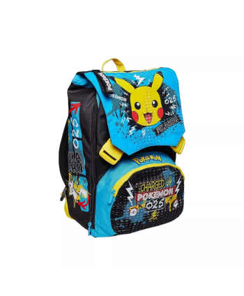 Marca: SevenZaino sdoppiabile con licenza Pokémon, turchese fluo, capienza da 18 l chiuso e 28 l aperto, con tasche e schienale preformato.