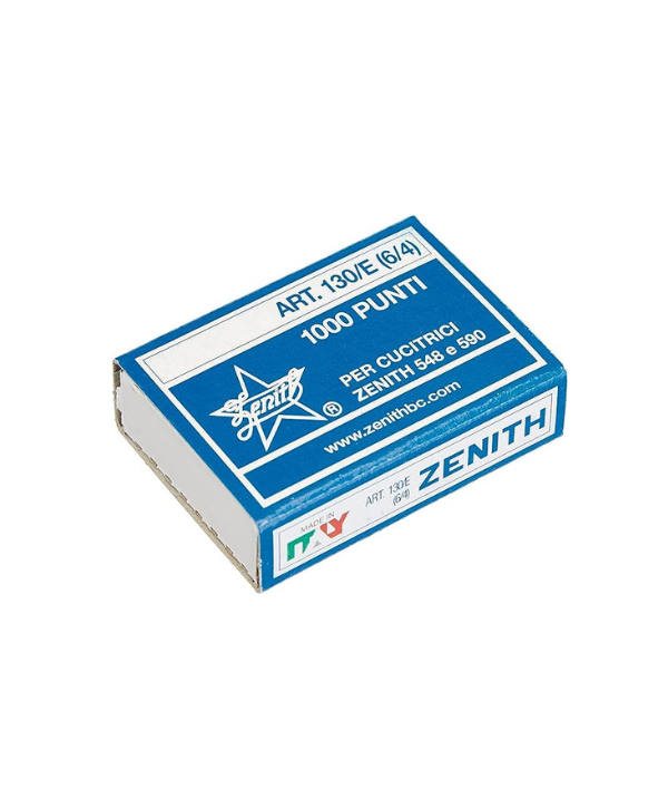 Marca: ZENITHConfezione da 1000 punti metallici Zenith 130/E (tipo 6/4), realizzati in acciaio naturale di alta qualità, perfetti per legare fino a 15 fogli. Soluzione affidabile per uso scolastico, ufficio o domestico.
