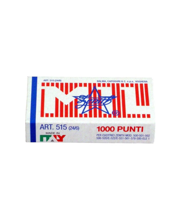 Marca: ZENITHScatola da 1000 punti metallici Zenith tipo 24/6 in acciaio naturale, compatibili con cucitrici mod. 515, ideali per uso professionale.