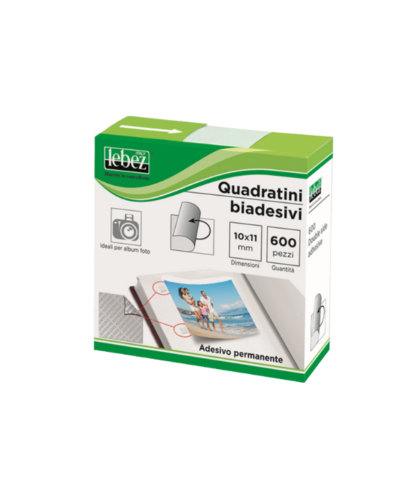 Marca: LEBEZ SPADispenser da 600 quadratini biadesivi trasparenti Lebez (10 × 11 mm), con adesivo permanente, ideali per montare fotografie in modo affidabile.