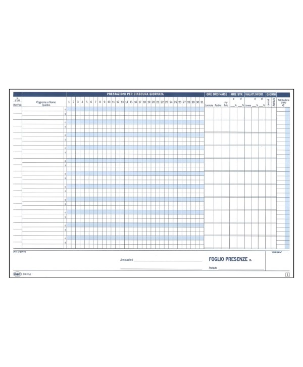Marca: DATA UFFICIOModulo per presenze mensili con 50/50 copie autoricalcanti, in formato A4 (21,5 × 29,7 cm). Perfetto per uffici e contabilità del personale, con praticità e chiarezza.