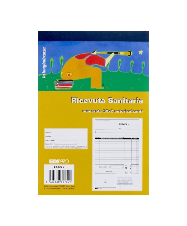 Marca: EDIPROBlocco per ricevute sanitarie in formato 23×15 cm, con 50 fogli autoricalcanti e 2 copie per foglio. Ideale per documentare prestazioni sanitarie in modo rapido.