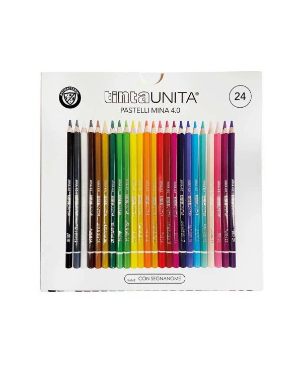 Marca: tintaUNITASet da 24 pastelli colorati con mina da 4.0 mm, fusto in legno verniciato nella stessa tinta della mina. Offre ampia gamma cromatica ed è adatto per uso scolastico e artistico.