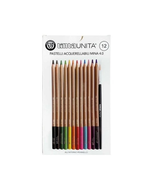 Marca: tintaUNITASet da 12 pastelli acquerellabili con mina da 4,0 mm, arricchiti da pigmenti vividi, utilizzabili sia a secco sia con acqua per ottenere effetti acquerello. Nella confezione è incluso un pennello