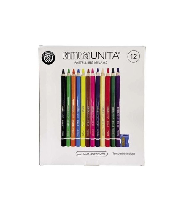 Marca: tintaUNITASet da 12 pastelli in legno con mina larga da 6,0 mm, ideale per copertura ampia e colori intensi. Ogni matita ha lo spazio “segnanome” per personalizzazione.