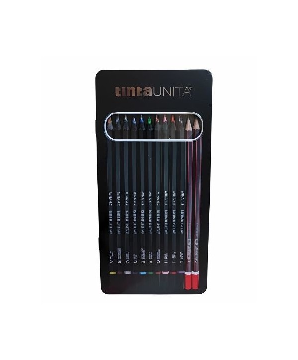 Marca: tintaUNITAScatola in metallo Tinta Unita con 10 pastelli multicolor a mina 4,2 mm, 2 matite HB, mini gomma e temperino; perfetta per creare disegni ricchi e completi.