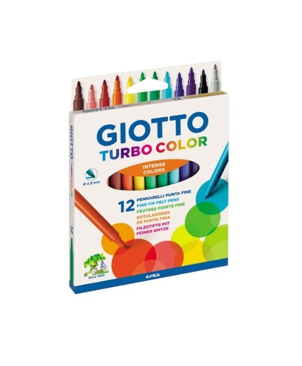 Marca: GIOTTOSet di 12 pennarelli Giotto Turbo Color con punta fine “turbo”, inchiostri innocui e lavabili e cappuccio di sicurezza ventilato, ideali per lavori dettagliati e piccoli artisti.