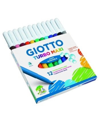 Marca: GIOTTOSet di 12 pennarelli Giotto Turbo Maxi con punta grosso 5 mm, impugnatura facile per le mani piccole, inchiostri lavabili e cappuccio di sicurezza, ideali per i più piccoli.