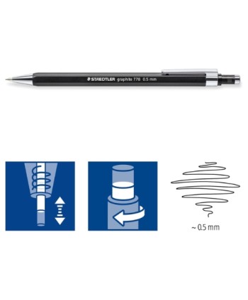 Marca: StaedtlerPortamine elegante e sottile in finitura nero opaco, perfetto per la scrittura pratica e precisa. Utilizza mine da 0,5 mm, ideale per disegno tecnico e scrittura dettagliata. Design ergonomico e gommino integrato per cancellature rapide.