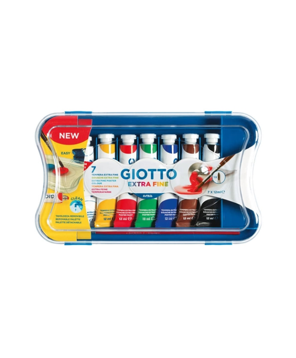 Marca: GIOTTOSet di 7 tubetti di tempera ultrafine da 12 ml ciascuno, in colori assortiti pieni di pigmento, che garantiscono una resa cromatica brillante e coprente. Ideale per illustrazione e attività creative, facilmente diluibile in acqua.
