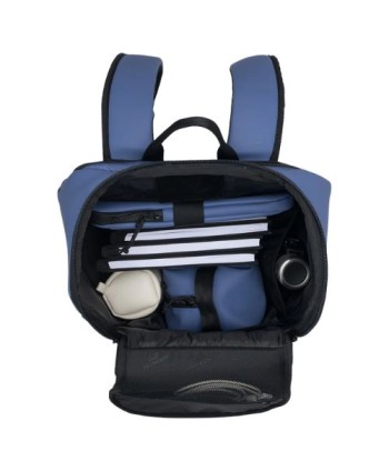 Contiene uno scomparto imbottito per computer portatile/tablet fino a 16″, una tasca interna per powerbank, una tasca frontale, due tasche laterali porta borraccia o ombrello, coppie di cinghie di compressione esterne, elementi rifrangenti sugli spallacci, copertura antipioggia integrata, gancio portachiavi, fondo rigido che lo fa restare in piedi ed è compatibile con cartelle A4.